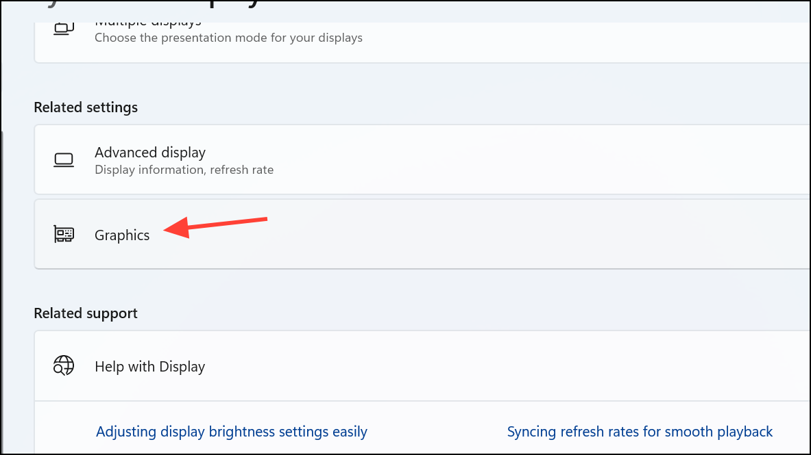 Step 2: On the Display page, scroll down and click on "Graphics".