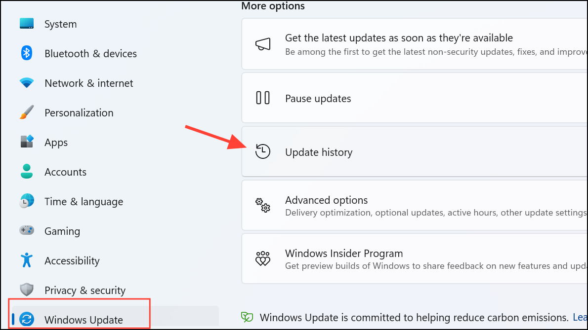 Step 1: Open Settings and go to Windows Update > Update history.
