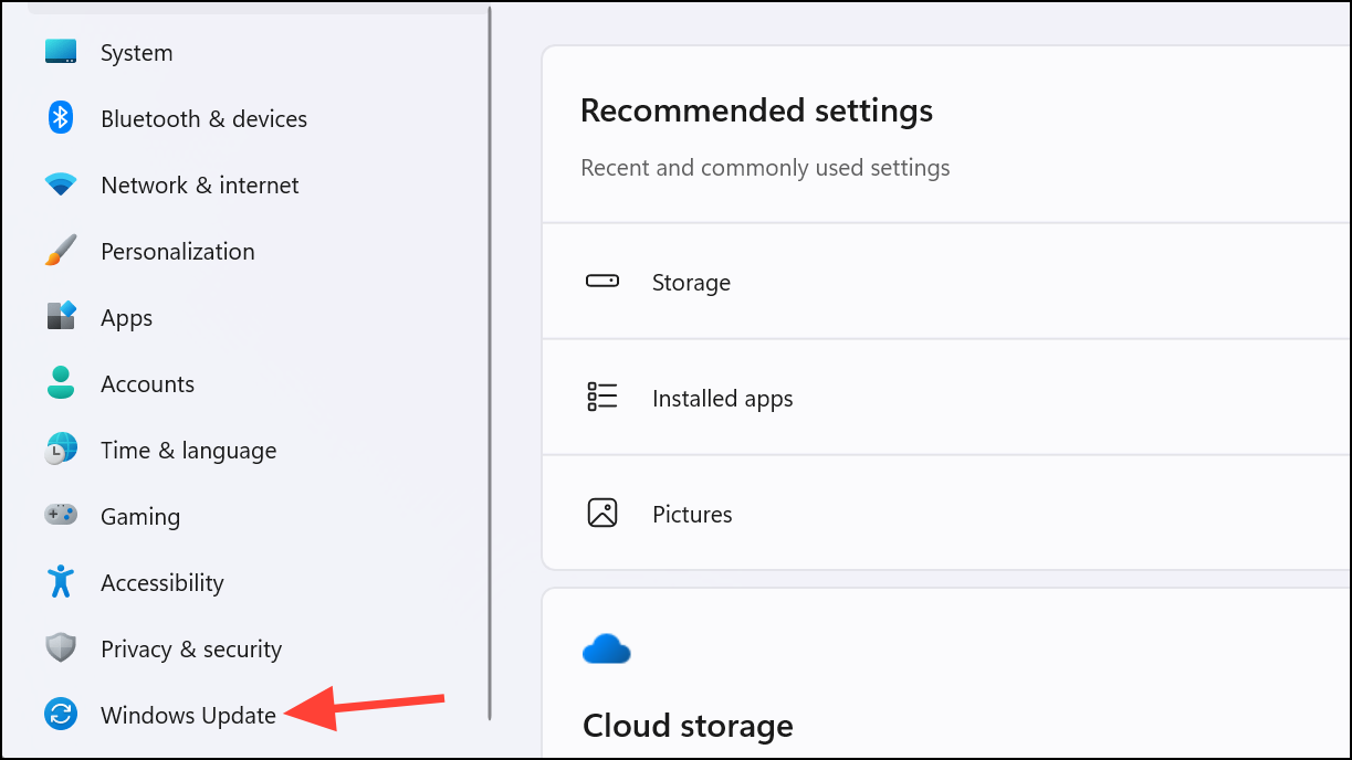 Step 2: In the Settings window, select Windows Update from the left sidebar.
