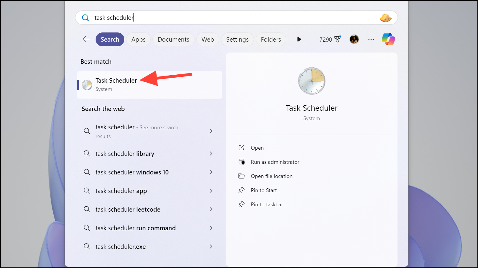 Step 1: Open the Task Scheduler by typing Task Scheduler into the search bar on the taskbar and selecting it from the search results.