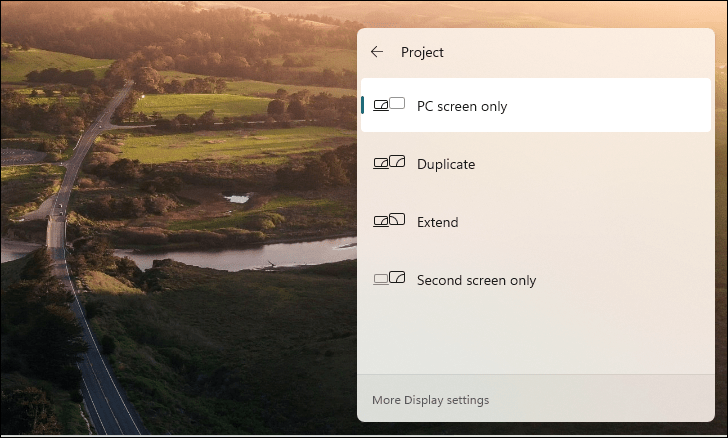 - Even if you can't see the menu, use the arrow keys to select a different projection mode (e.g., Duplicate, Extend, Second screen only).