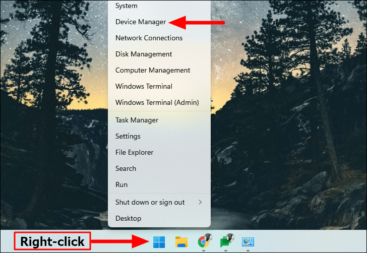 Starticon on the taskbar or pressWINDOWS+Xand select Device Manager.
