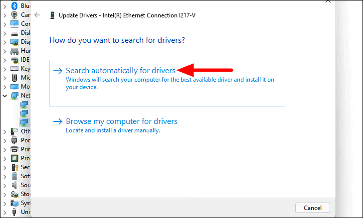 - Select Search automatically for drivers. Windows will search your computer for the best available driver and install it.