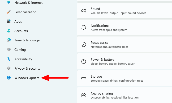 - Go to the Windows Update tab on the left.
