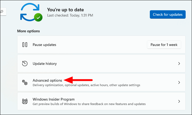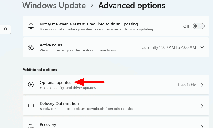 - Select Optional updates under Additional options.