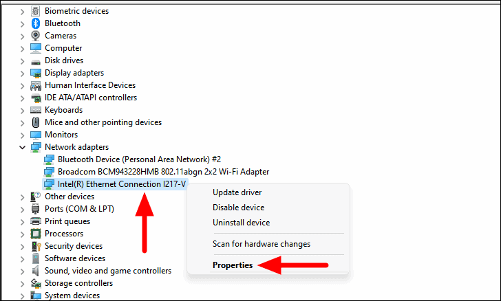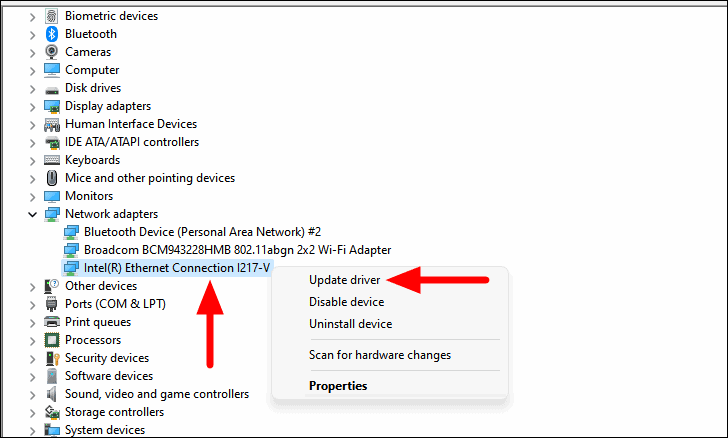 - Expand Network adapters and right-click your Ethernet adapter.