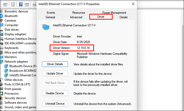 - Go to the Driver tab and note the driver version.