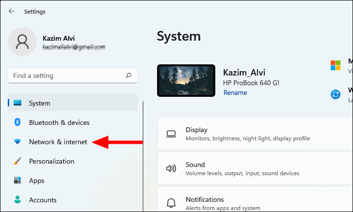 - Open Settings and select Network & internet from the left pane.