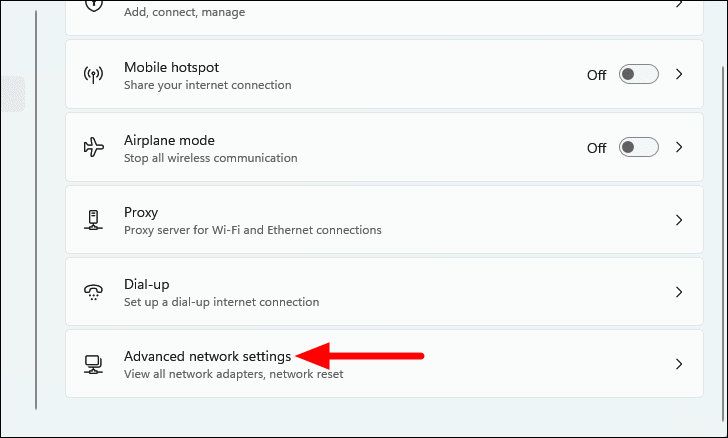 - Click on Advanced network settings on the right.