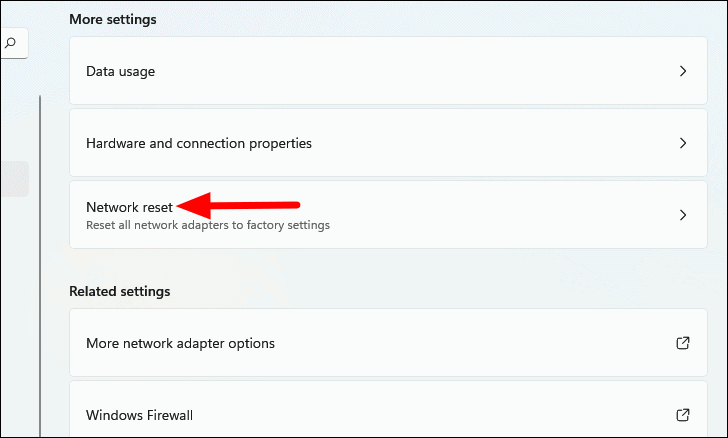- Under More settings, click on Network reset.