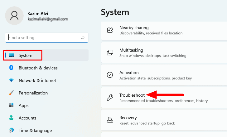 - Open Settings and navigate to System > Troubleshoot.