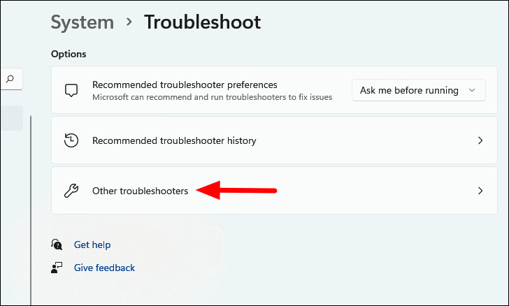 - Click on Other troubleshooters.