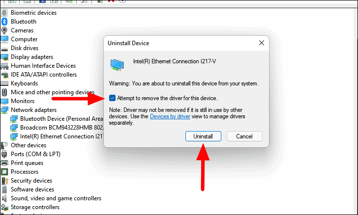 - In the confirmation window, check Attempt to remove the driver for this device and click Uninstall.