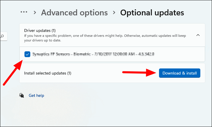 - If an update for your Ethernet adapter is available, check the box next to it and click Download & install.