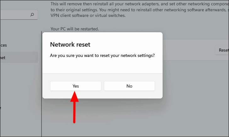 - Confirm by clicking Yes. Your PC will restart to complete the reset.