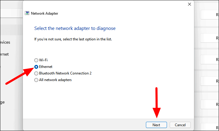 - Select Ethernet and click Next.