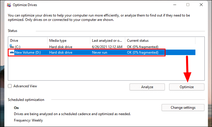 - Press the Windows key, type Defragment and Optimize Drives, and select it from the search results.