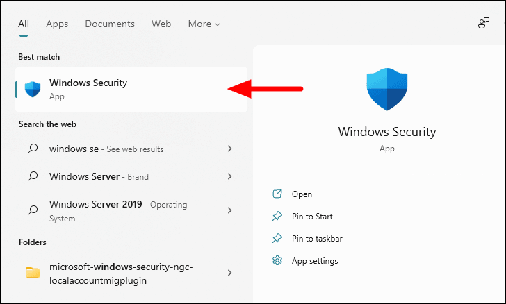 - Press the Windows key, type Windows Security, and select it from the search results.