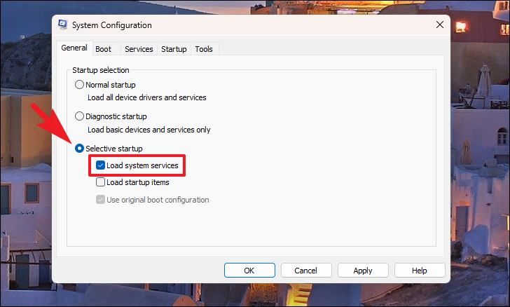 Step 2: Under the General tab, select Selective startup and uncheck Load startup items. Ensure Load system services is checked.