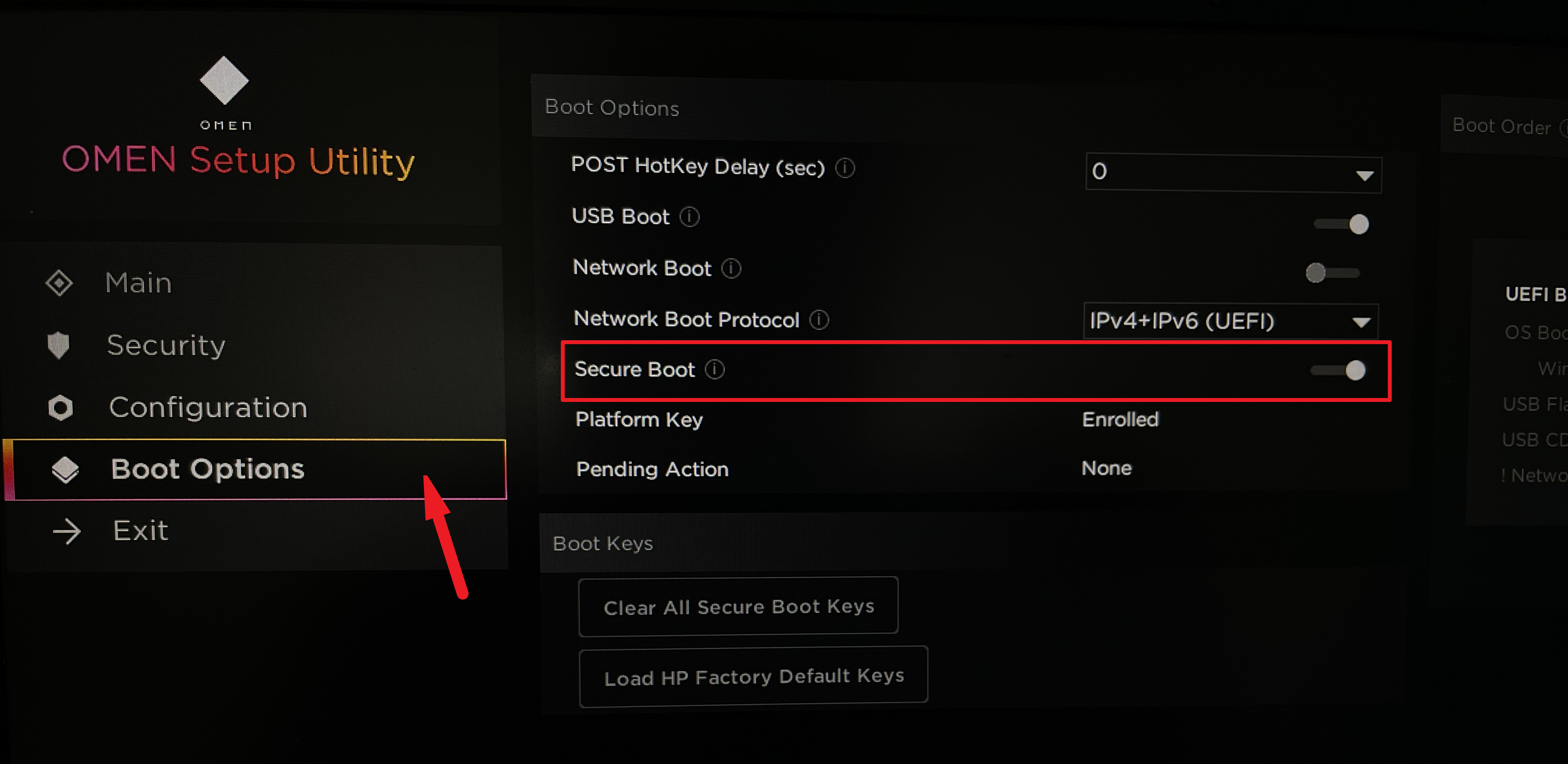 Step 5: Go to the Boot tab and enable Secure Boot.