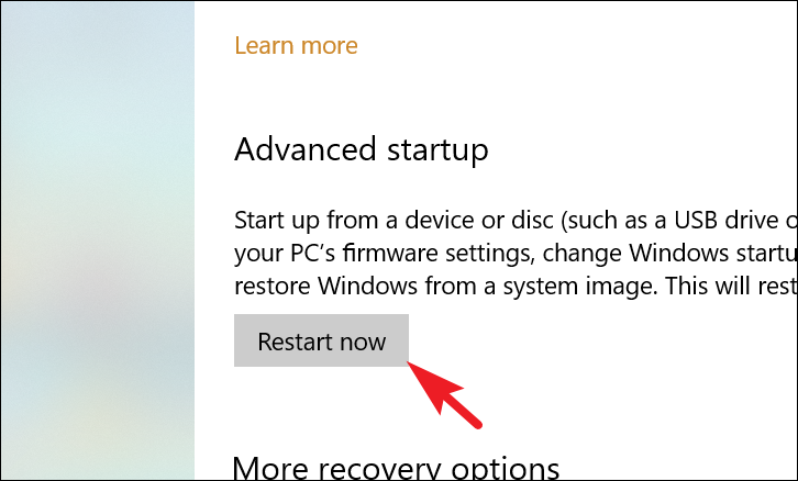 Step 2: Select Recovery from the left menu. Under Advanced startup, click Restart now.