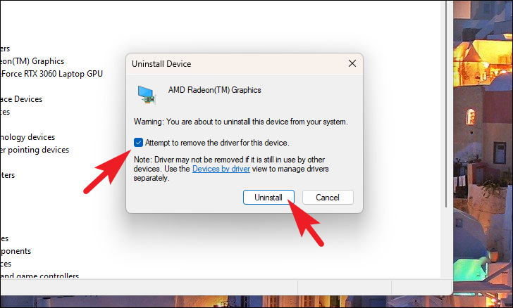 Step 3: Check Attempt to remove the driver for this device and click Uninstall.