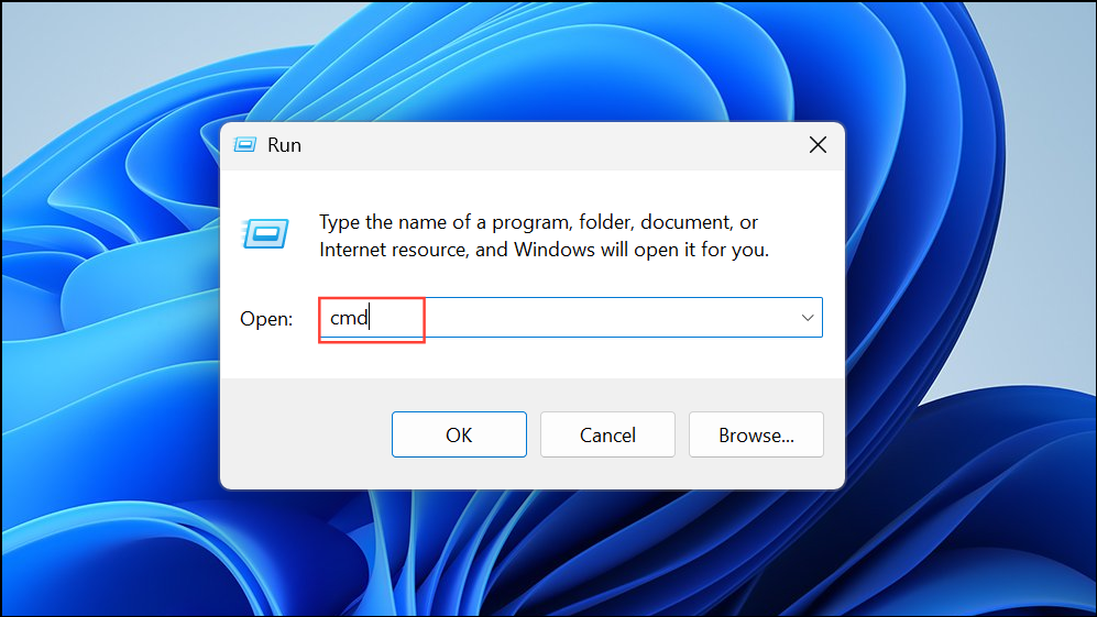 Step 1: Open an elevated Command Prompt by pressing Win + R, typing cmd, and pressing Ctrl + Shift + Enter. This ensures you have administrator rights.