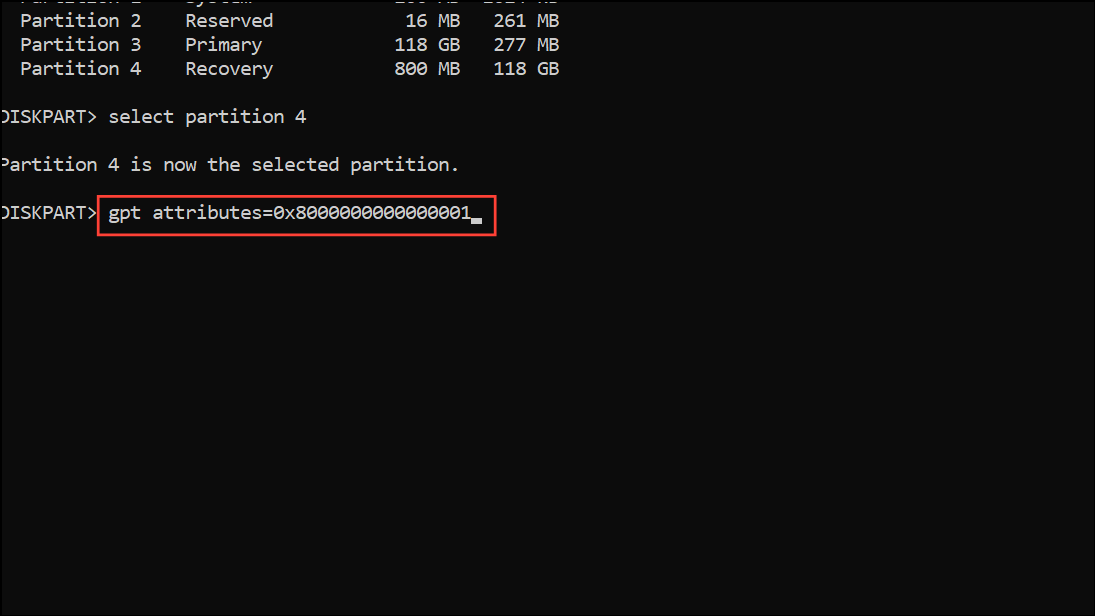 Step 8: Remove the drive letter by typing remove letter=Z (replace Z with the actual drive letter assigned to the recovery partition).