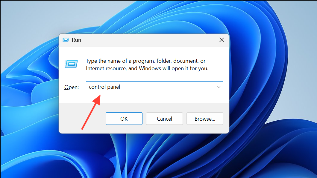 Step 1: Open the Run dialog with Windows + R, type control panel, and press Enter.