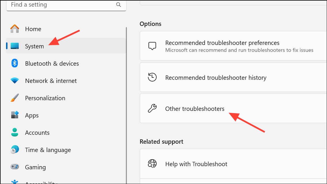 Step 2: Navigate to System > Troubleshoot > Other troubleshooters.