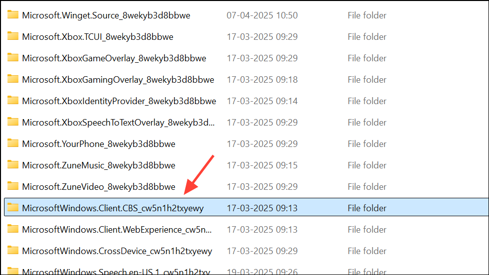 HKEY_LOCAL_MACHINE\SOFTWARE\Microsoft\Windows\CurrentVersion\AppModel\StateChange\PackageList\MicrosoftWindows.Client.CBS_1000.26100.121.0_x64__cw5n1h2txyewyIf your registry lists a different version number, select the key with the highest version.