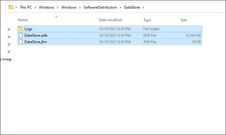 Step 5: Press Windows + R to open the Run dialog box. Type or paste C:\Windows\SoftwareDistribution\DataStore and click OK.