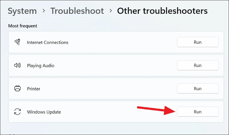 Step 5: Find the Windows Update troubleshooter and click on the Run button next to it.