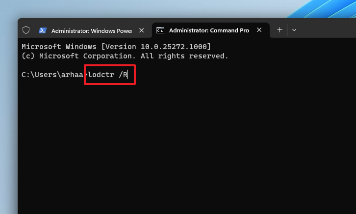 Step 4: Reset the performance counter by typing the following command and pressing Enter:
