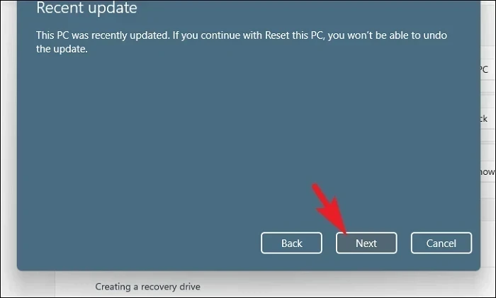 Step 4: Under the Reset this PC section, click on Reset PC. A new window will open.