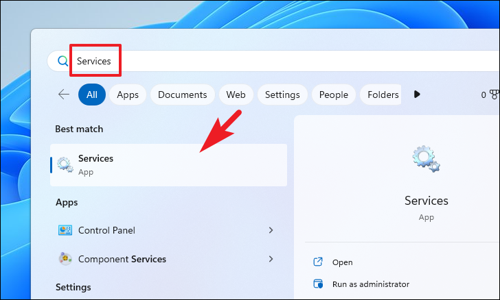 Step 1: Open the Services application. Click on the Start menu and type Services. Select the Services app from the search results.