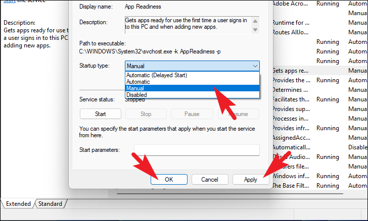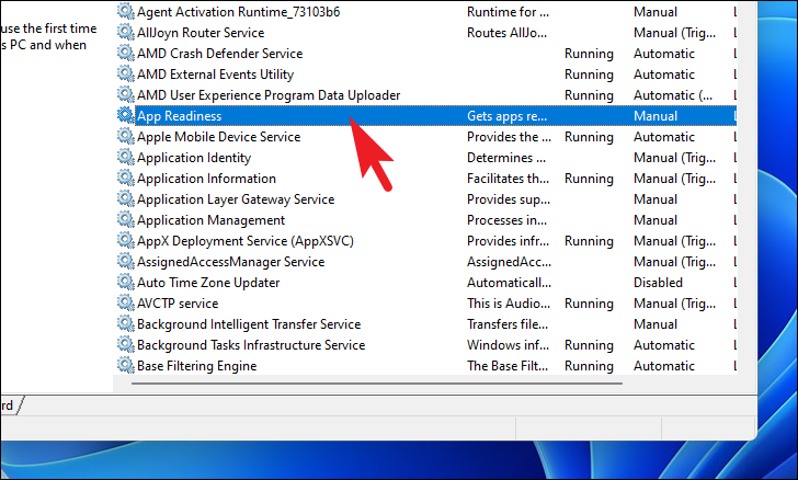 Step 2: In the Services window, scroll down to locate App Readiness. Double-click on it to open its properties.