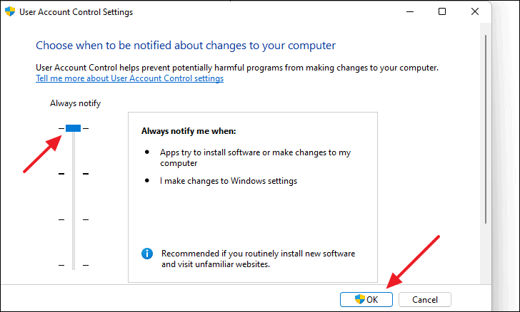 User Account Control helps prevent unauthorized changes to your system. Enabling UAC may resolve permission issues during installation.