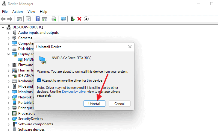 - Check 'Attempt to remove the driver for this device' and click 'Uninstall'.