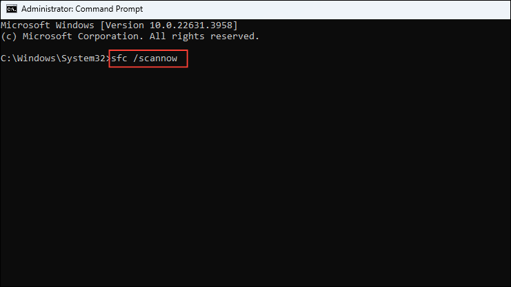 sfc /scannowand press Enter.