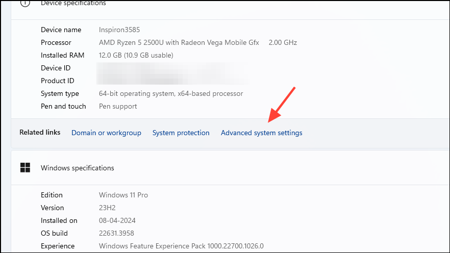 - Then click on 'Advanced System Settings'.