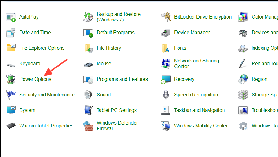 - Open the Control Panel and click on 'Power Options'.