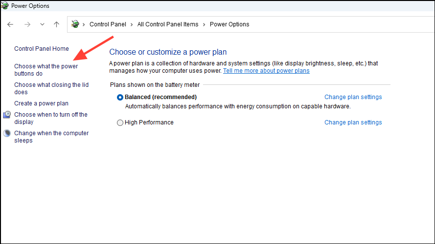 - Next, click on 'Choose what the power buttons do' on the left.