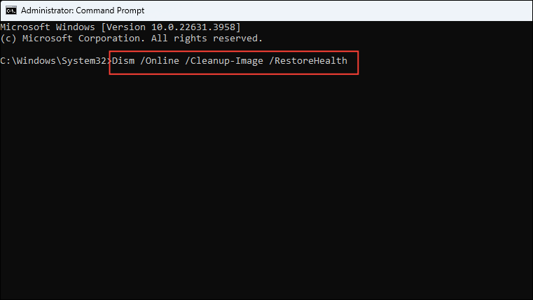 Dism /Online /Cleanup-Image /RestoreHealthbefore pressing Enter.