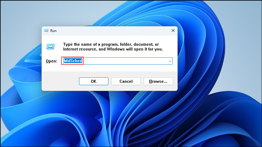Win + Rshortcut, typeMdSchedin it, and press Enter.