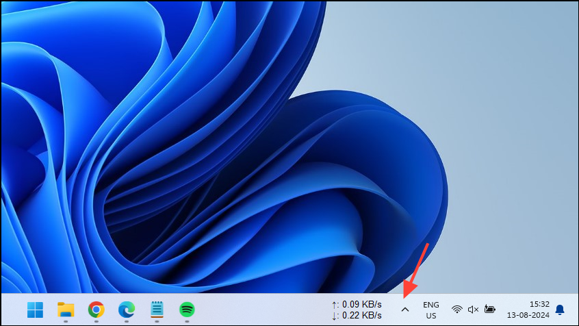 - Click on the Taskbar Overflow icon on the taskbar to view hidden icons.