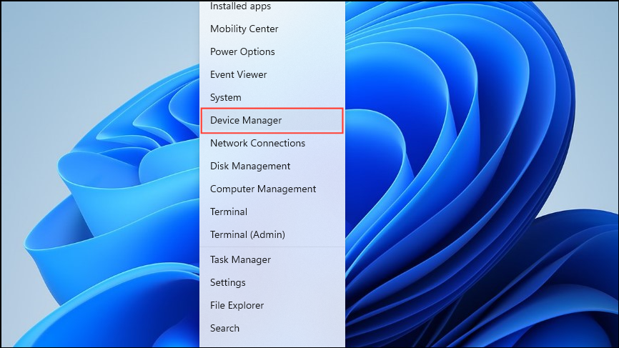 - Right-click on the Start button and click on 'Device Manager' to open it.