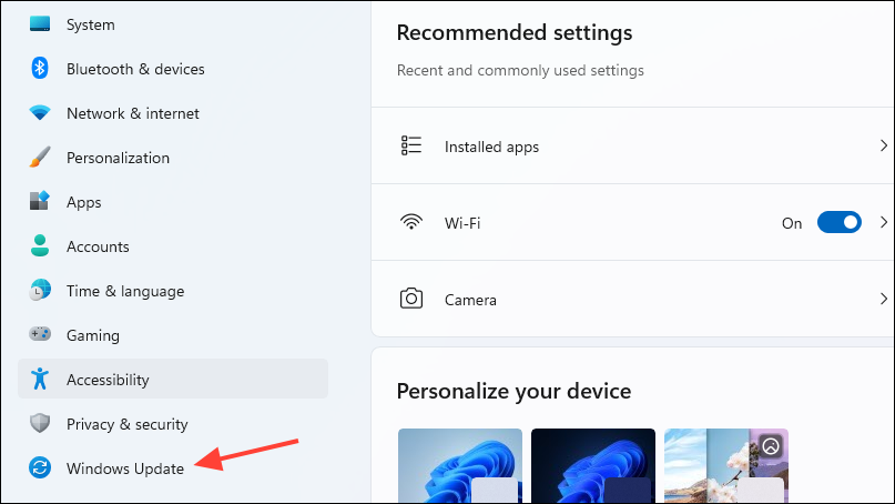 - Open the Settings page and click on 'Windows Update' on the left.