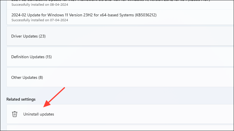- Next, click on 'Uninstall updates'.
