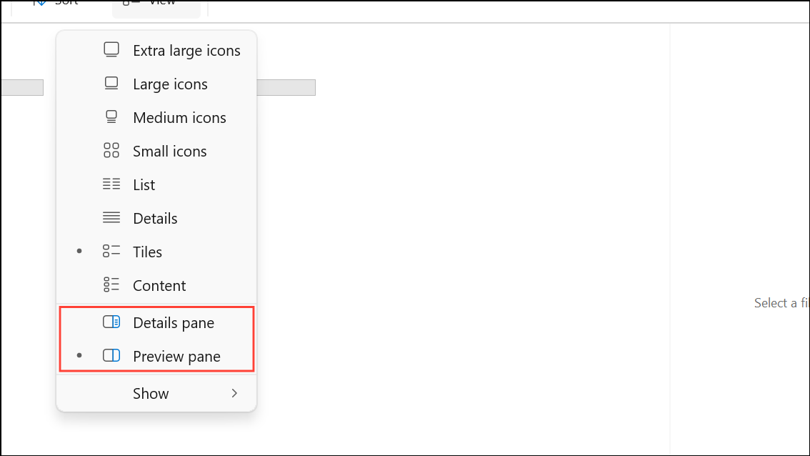 Step 3: Click to uncheck both Preview pane and Details pane if they are enabled. This removes the file preview and metadata display from the Explorer window.